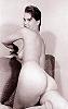 potentially overwhelming as a woman's behind. Unlike many other contemporary aesthetics of female beauty, the average man's criteria and appreciation of women's bottoms has changed little in the past fifty years. There are, of course, some contemporary, "thinner" celebrities with well-shaped, behinds (ie. Nicole Kidman, Lara Flynn Boyle), and many American women are hood-winked into believing that there is something undesirable about an ample behind. Overall, however, men still look for the same things back there: roundness, definition, fullness and, perhaps most-importantly, the contrasting differential from the waistline, (the key ingredient of the "hour-glass" look). I would be remiss in my duties not to remind you of using discretion while bottom-spotting, few things are as troublesome to me as the ogling, open-mouthed simpleton. The seasoned "spotter" should be able to take in the subject with aesthetic purity, appreciating the fortuitous serendipity of the moment. I tell you, in my golden days of figure photography: the 1950's, 1960's and even 1970's, there was much more general appreciation, from both genders, for a "full behind". A chap could walk down any street and observe how progressions in fashion enhanced the bottoms of women. Why, the first time I saw a woman in blue jeans, (known back then as "dungarees"), I nearly walked headlong into a lamp post. Verily, the mesmerizing motion of a woman's rear end is more hypnotic than Svengali could ever have been, undulating in a most addictive rhythm. I still hear music when "spotting" out there, sometimes it's a delicate Martin Denny piece, other times it's an all-out, Xavier Cugat samba. Submitted for your approval - an ever-changing sampling of the wonderful past of "behind-shots". If you listen carefully, you too may hear music.